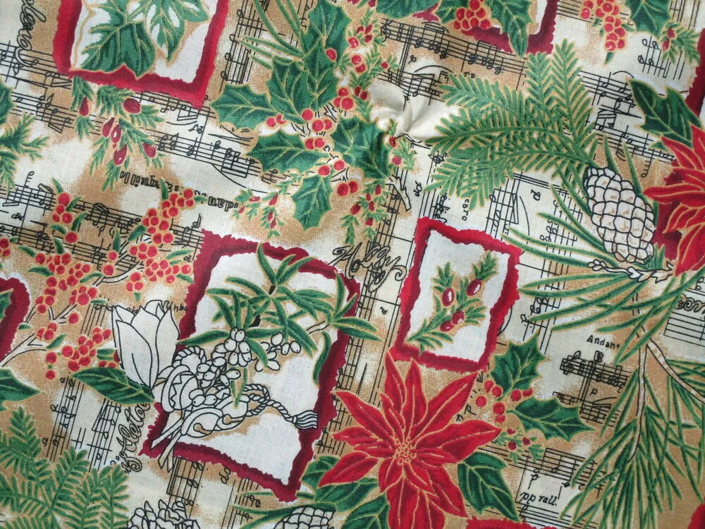 - vzor - červená vianočná ruža, čierne noty, ihličie, červeno - bordový obdĺžnik
