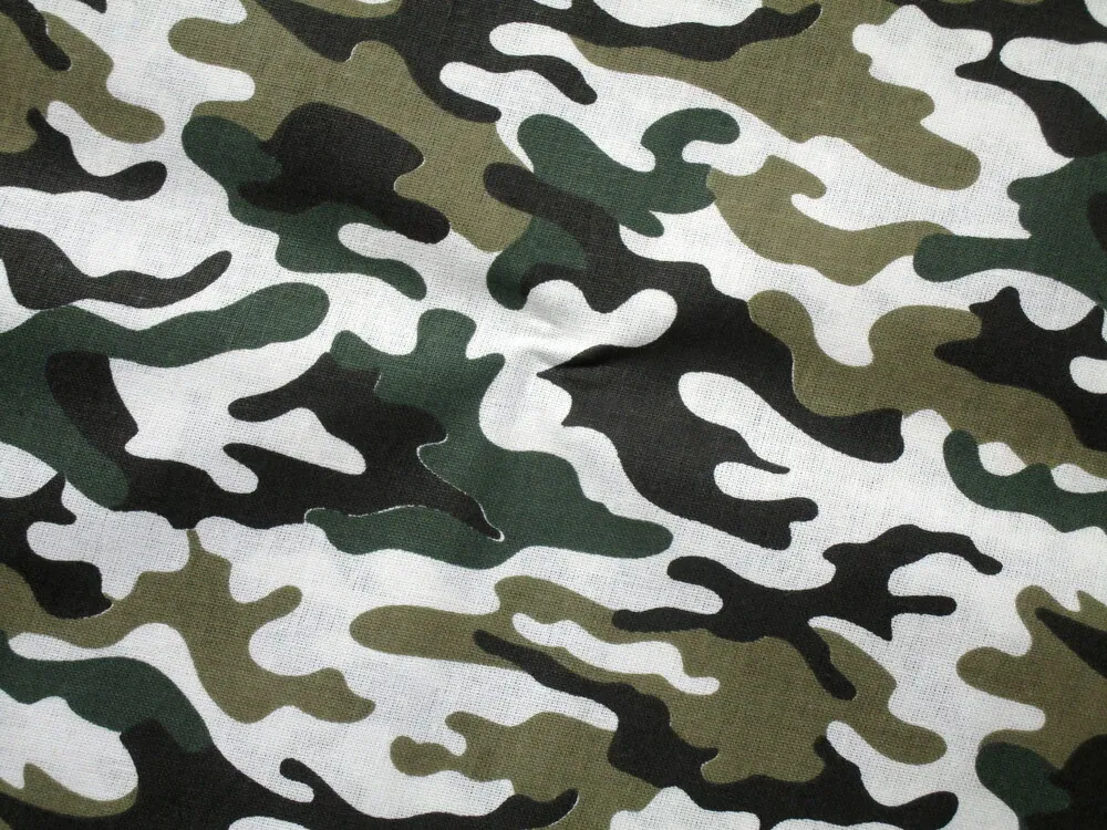 - Bavlna biela "béžovo-zeleno-čierny maskáč"