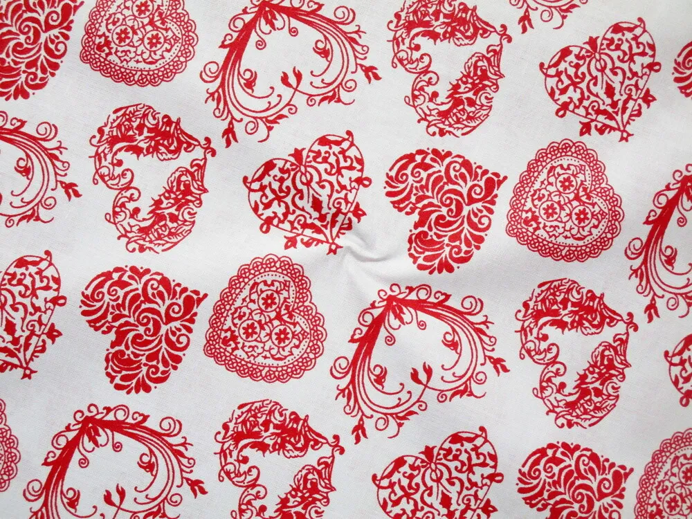 Bavlna biela "červené srdiečka"Skladom5,50 EUR/ m4,47 EUR bez DPH