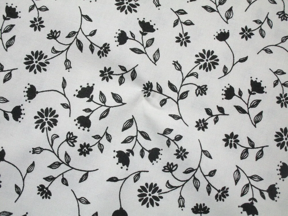 Bavlna biela "čierne kvety" - certifikovanáSkladom6,00 EUR/ m4,88 EUR bez DPH