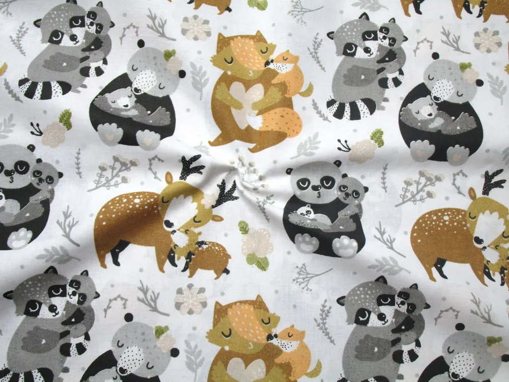 Bavlna biela "lesné zvieratká"Skladom5,50 EUR/ m4,47 EUR bez DPH