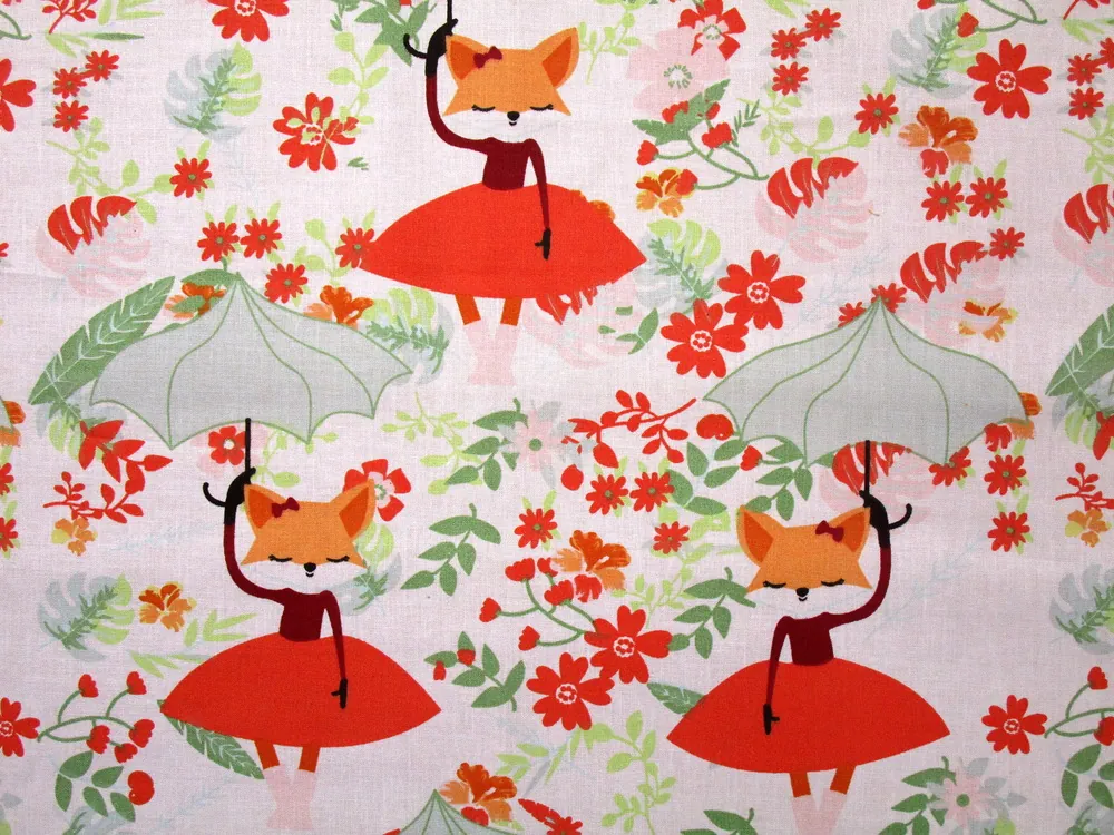 Bavlna biela "líška s dáždnikom"Skladom5,50 EUR/ m4,47 EUR bez DPH