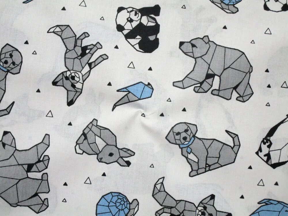 Bavlna biela "sivo-modro-čierne zvieratká"Skladom5,50 EUR/ m4,47 EUR bez DPH
