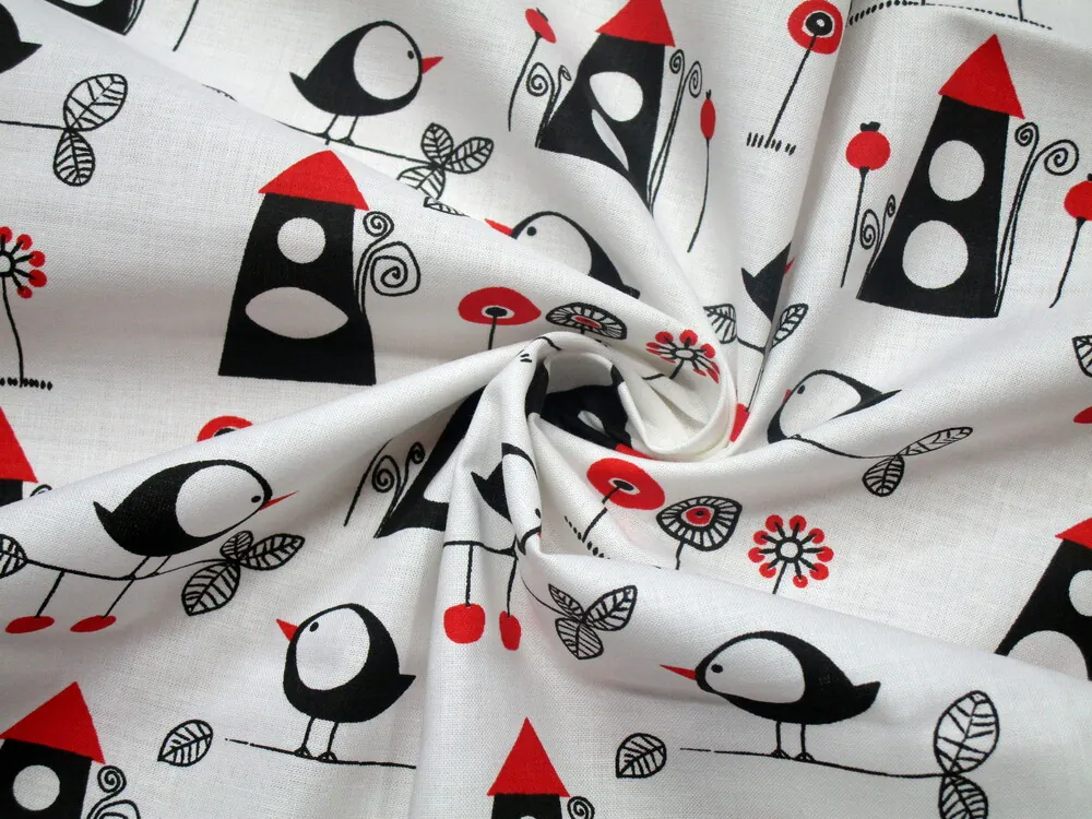 Bavlna biela "vtáčik, domček"Skladom6,50 EUR/ m5,28 EUR bez DPH