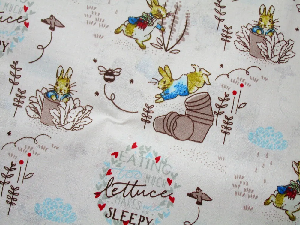- vzor - zajko v modrom kabátiku, hnedý črepník, nápis "EATING TOO MUCH LETTUCE MAKES ... SLEEPY"