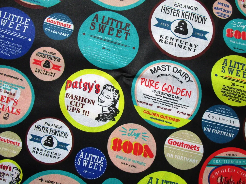 Bavlna čierna "farebné etikety"Skladom5,00 EUR/ m4,07 EUR bez DPH