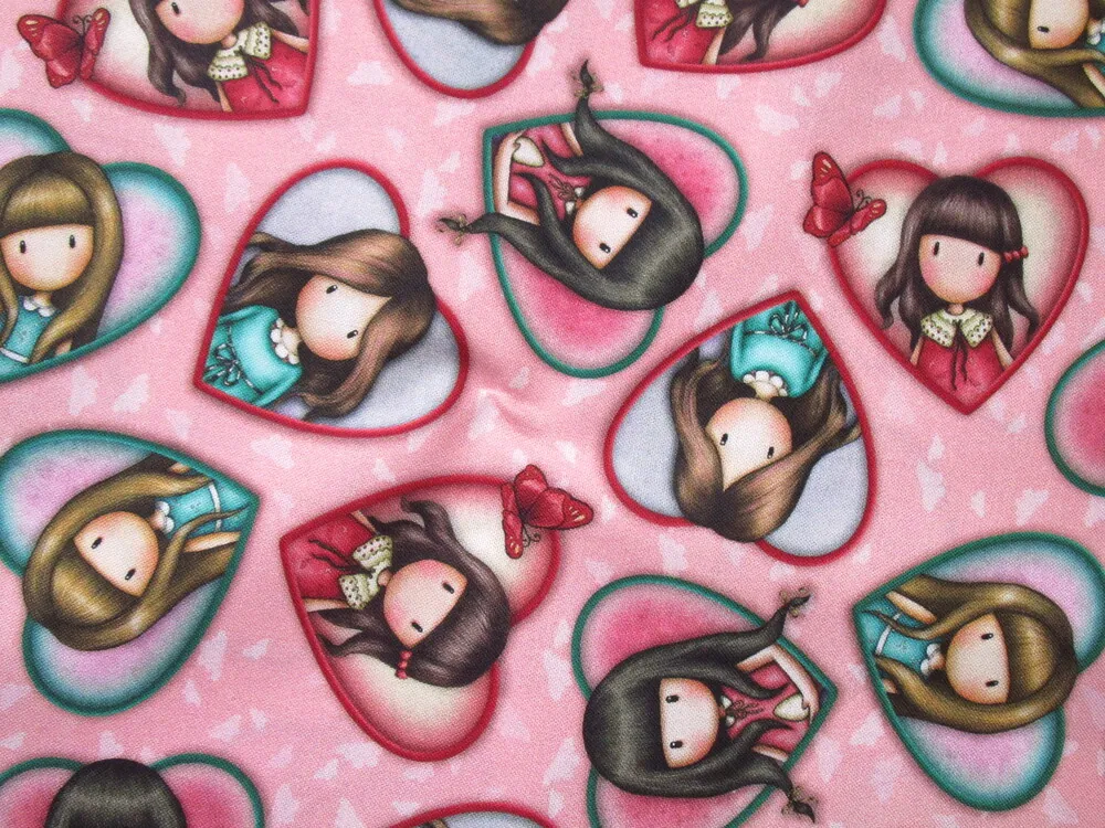 Bavlna ružová "dievčatká v srdiečku" - AmerikaSkladom14,00 EUR/ m11,38 EUR bez DPH