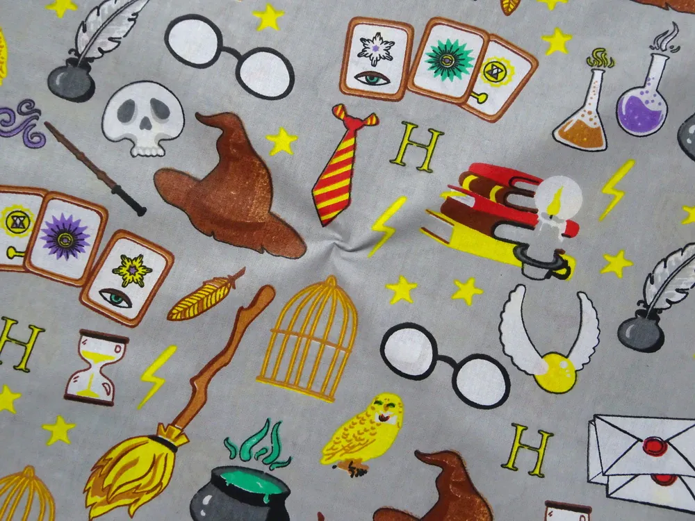 Bavlna sivá "Harry Potter"Skladom6,50 EUR/ m5,28 EUR bez DPH