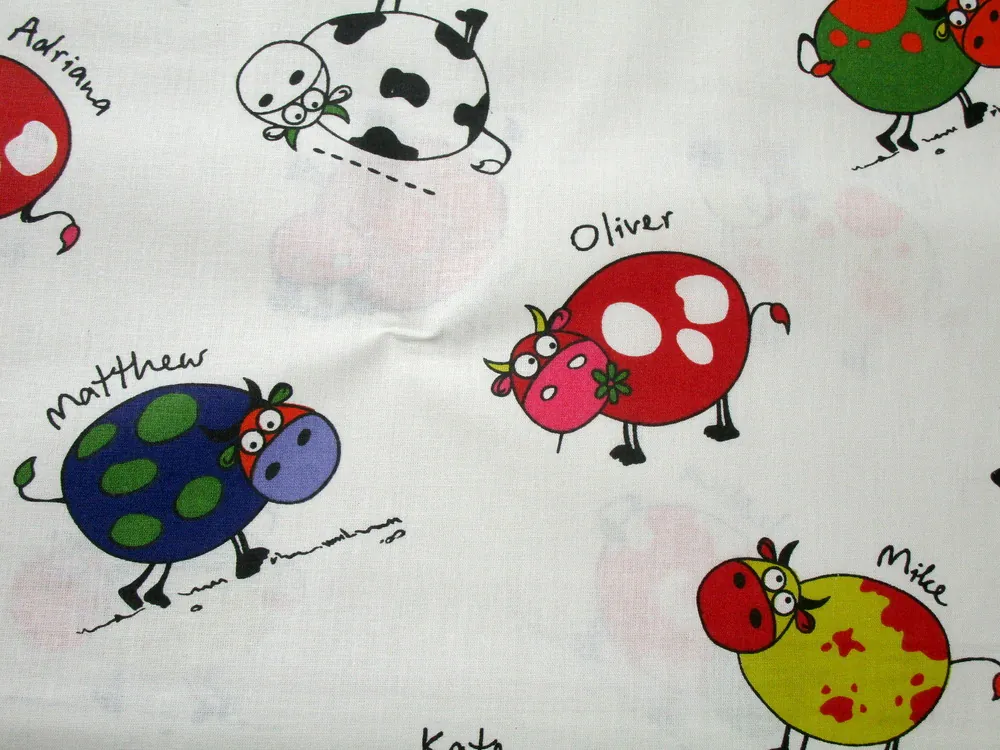 Bavlna smotanová "kravičky s menami"Skladom4,60 EUR/ m3,74 EUR bez DPH