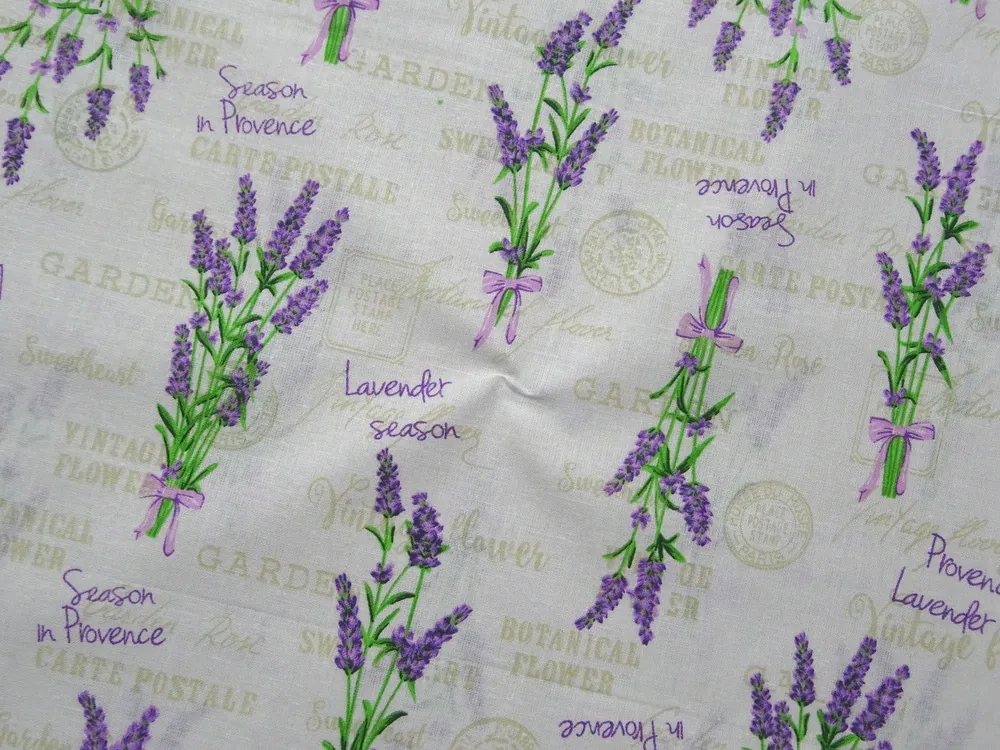 Bavlna smotanová "levanduľa, nápisy"Skladom5,50 EUR/ m4,47 EUR bez DPH