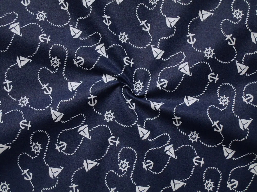 Bavlna tmavomodrá "biela plachetnica,kormidlo"Skladom5,50 EUR/ m4,47 EUR bez DPH