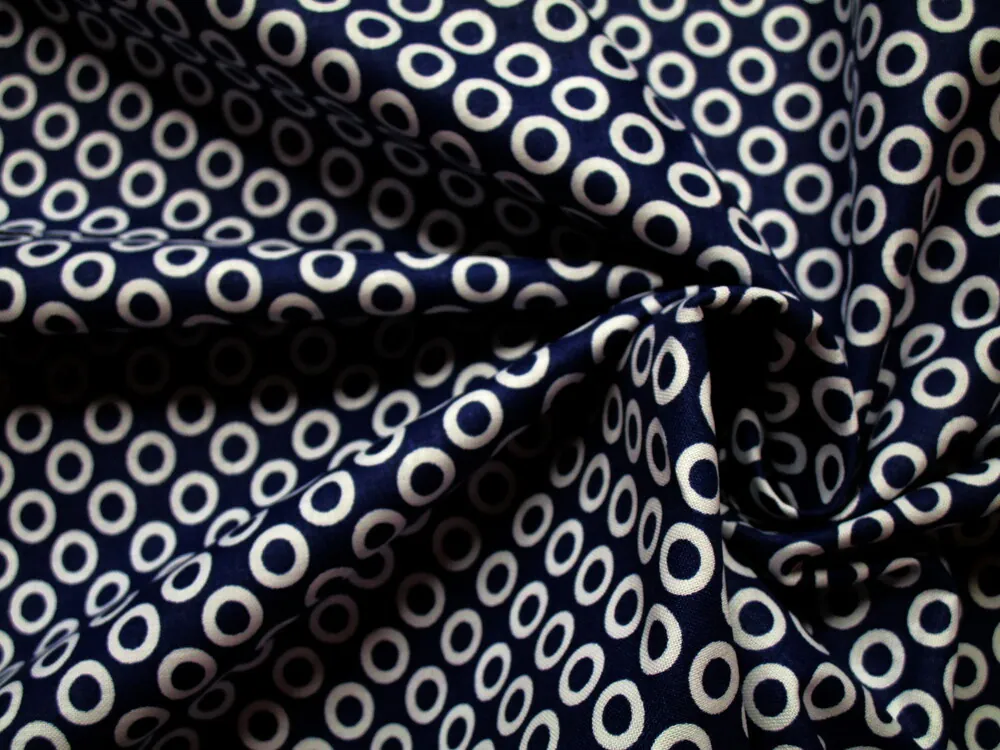 Bavlna tmavomodrá "biely kruh" - zbytokSkladom1,50 EUR/ ks1,22 EUR bez DPH