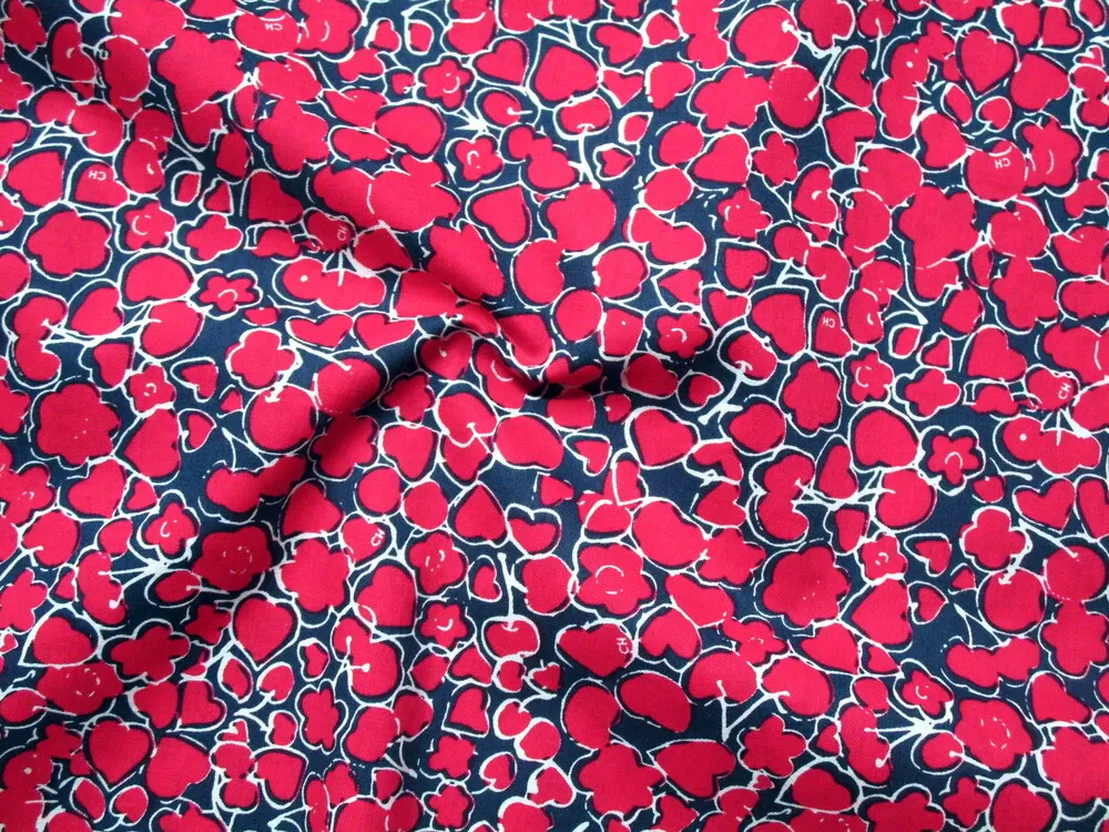 Bavlna tmavomodrá "srdiečka, kvetiny" - zbytokSkladom5,00 EUR/ ks4,07 EUR bez DPH