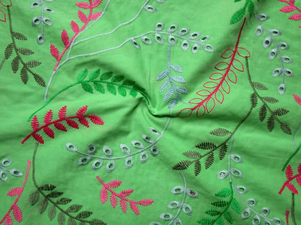 Bavlna zelená "vyšívané listy"Skladom14,00 EUR/ m11,38 EUR bez DPH