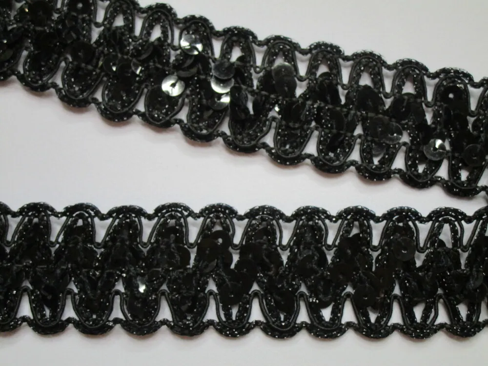 Borta čierna "vlnovky s flitrami"Skladom1,70 EUR/ m1,38 EUR bez DPH