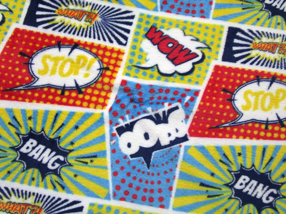 Fleece biely "farebný komiks"Skladom8,80 EUR/ m7,15 EUR bez DPH