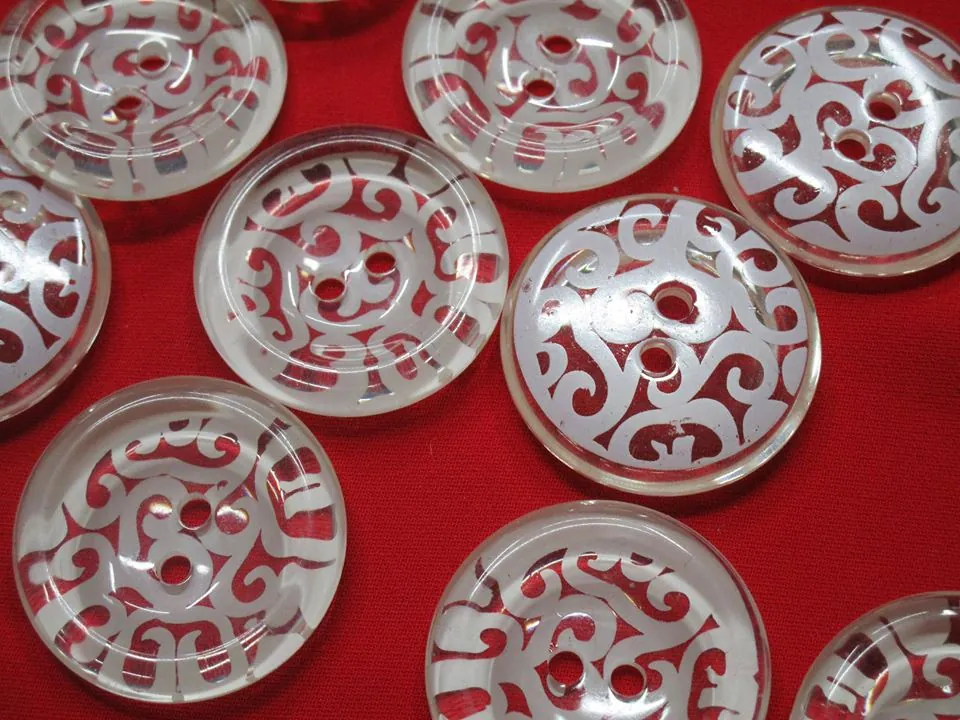 Gombík priesvitný "biely vzor" - 30 mmSkladom0,30 EUR/ ks0,24 EUR bez DPH