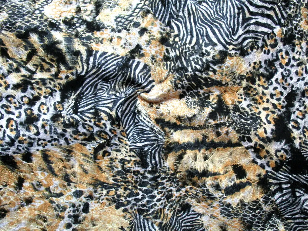 - Kabátovina čierna "béžovo-pomarančový zvierací motív"