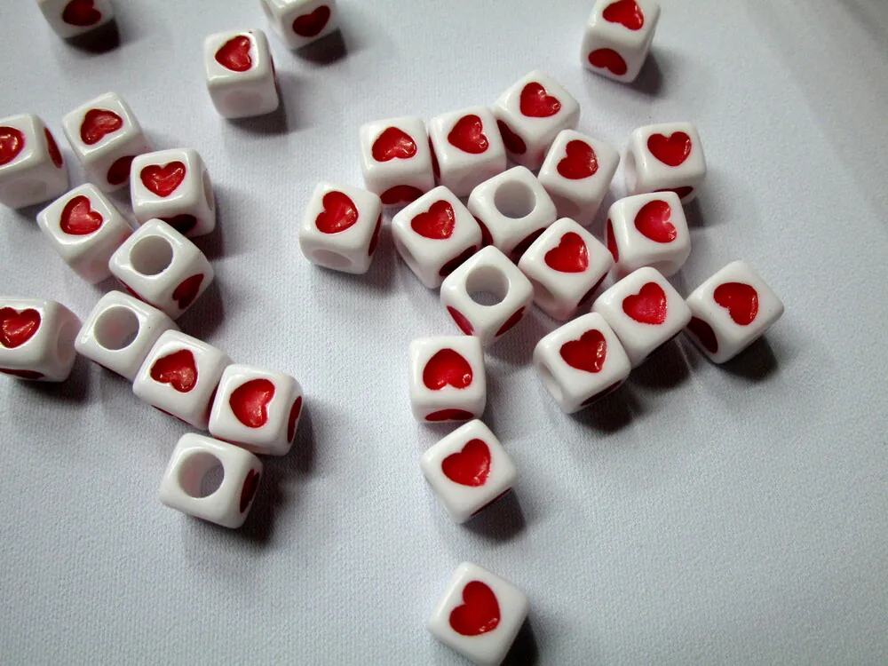 Korálik biely "červené srdiečko" - balíkSkladom2,00 EUR/ ks1,63 EUR bez DPH