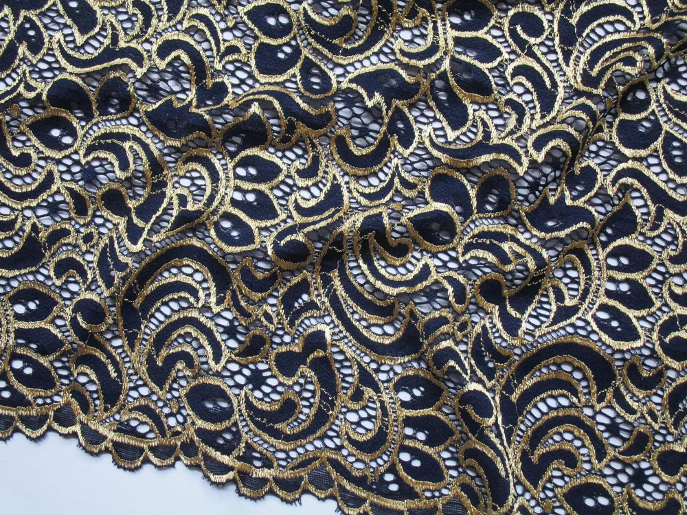 - Krajka elastická tmavomodrá "zlatý vzor"