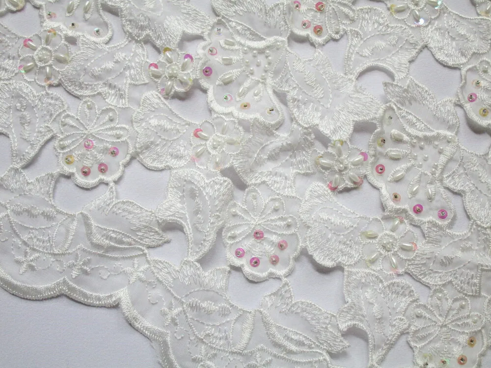 Krajka smotanová "kvety s flitrami a korálikmi"Skladom20,00 EUR/ m16,26 EUR bez DPH