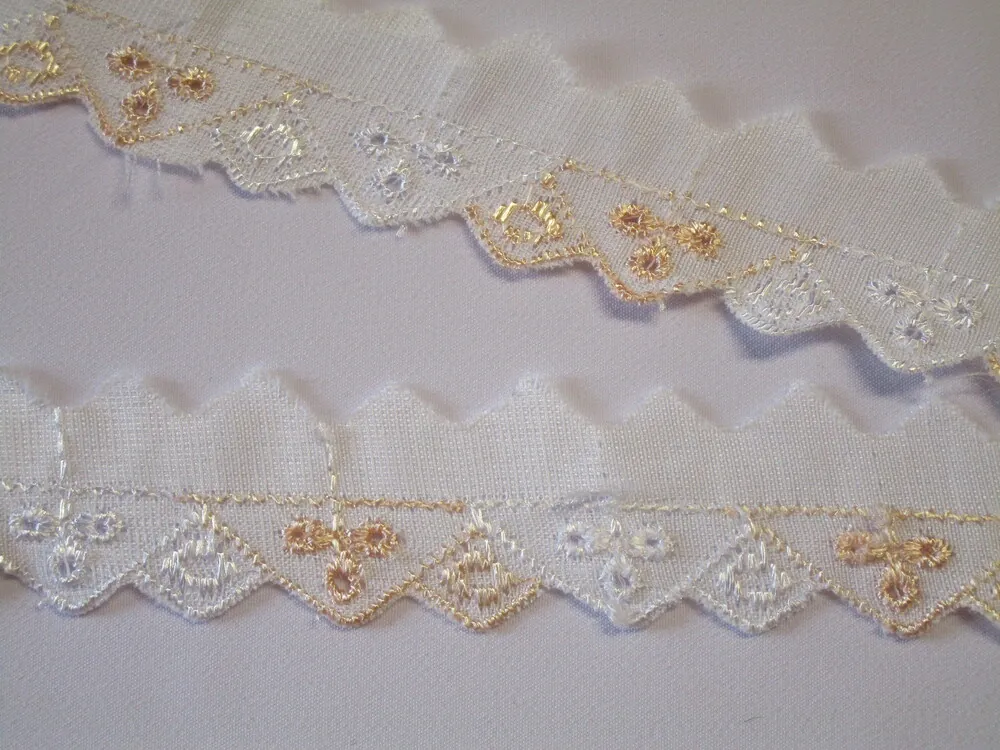 - vzor - lesklou bielou a svetlo pomarančovou nitkou vyšívaný vzor