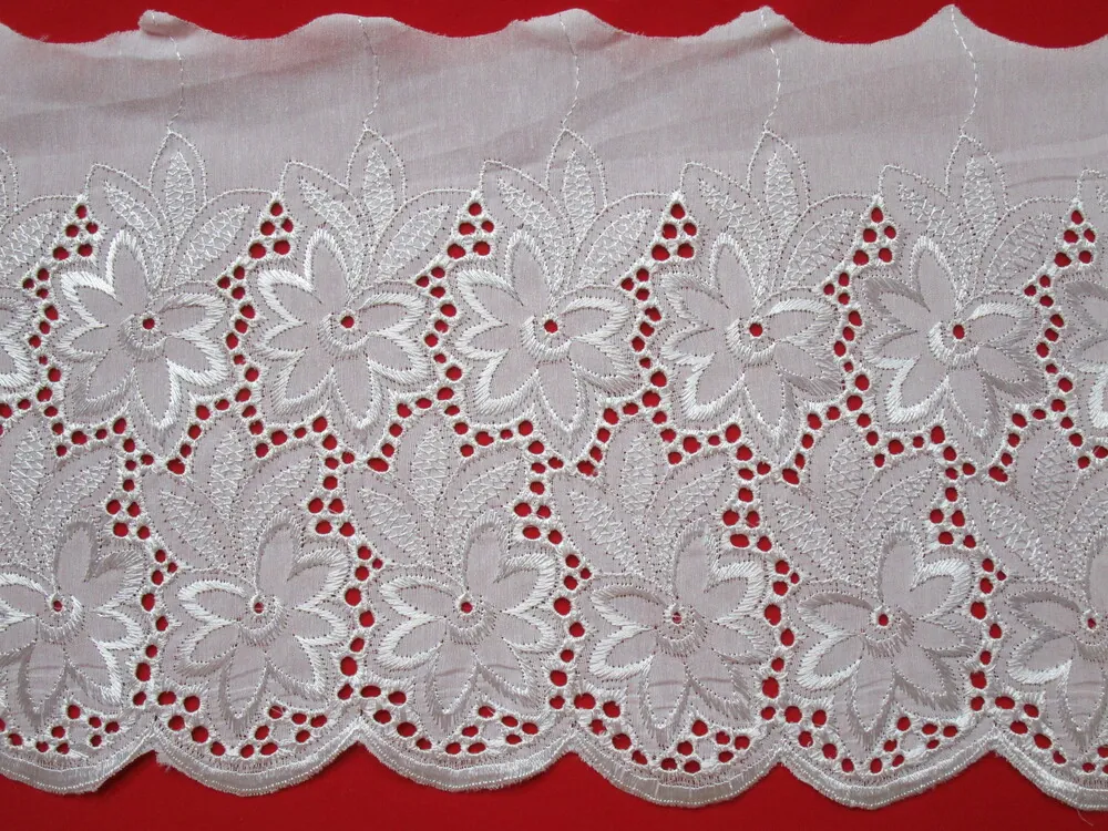 - vzor - bielou lesklou nitkou vyšívané kvety v dvoch radoch, spodná vlnovka ozdobná