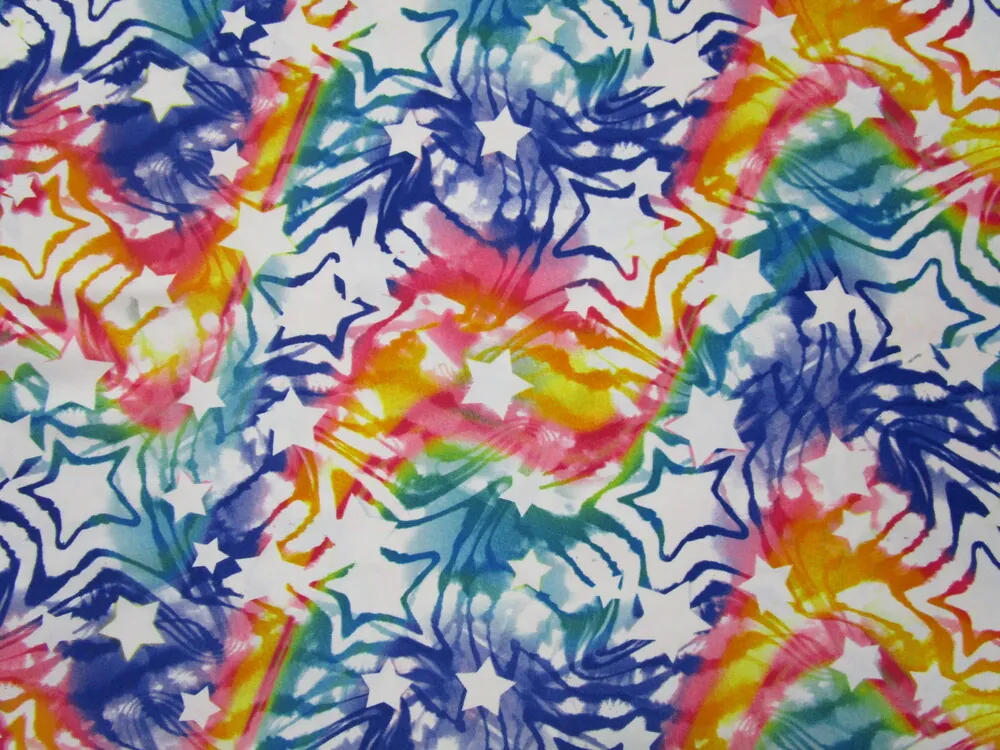 - vzor - pomarančové, tyrkysové, fialové a ružové hviezd a dúha