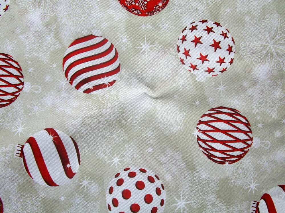 Poťahovka béžová "bielo-červená vianočná guľa"Skladom7,40 EUR/ m6,02 EUR bez DPH