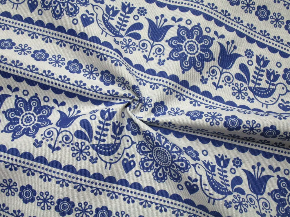 Poťahovka biela "modrý folk vzor"Skladom8,50 EUR/ m6,91 EUR bez DPH