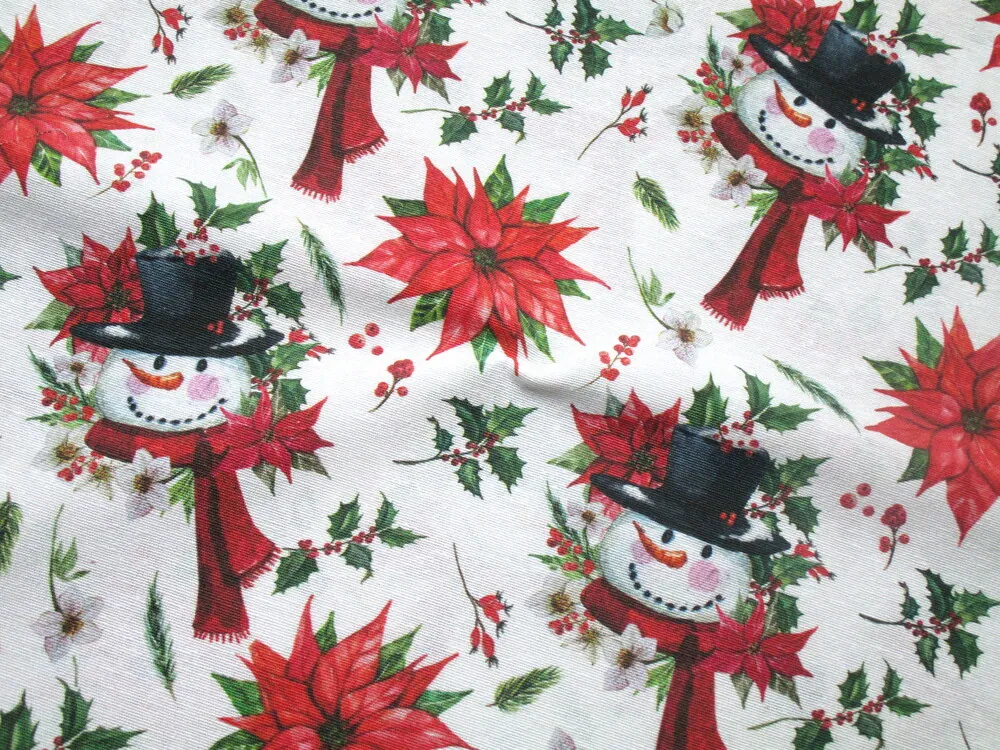 Poťahovka biela "snehuliak, vianočná ruža"Skladom7,40 EUR/ m6,02 EUR bez DPH