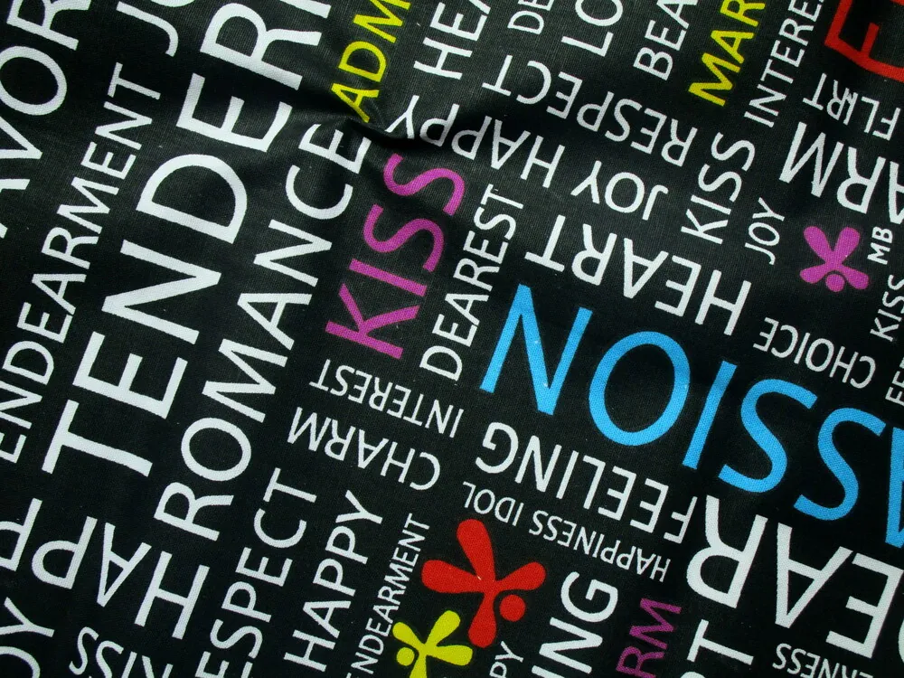 Poťahovka čierna "nápisy, fliačiky"Skladom7,40 EUR/ m6,02 EUR bez DPH