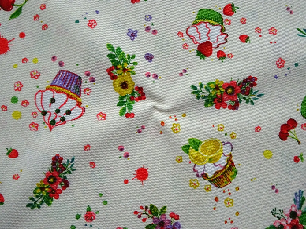 Poťahovka maslová "ovocný muffin, kvety"Skladom6,50 EUR/ m5,28 EUR bez DPH