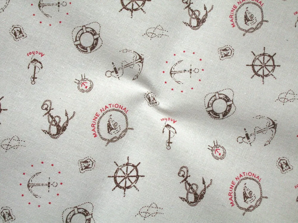 - vzor - kormidlo, kotva, koleso, a iné námornícke vzory, červené nápisy "MARINE NATIONAL", "Anchos"