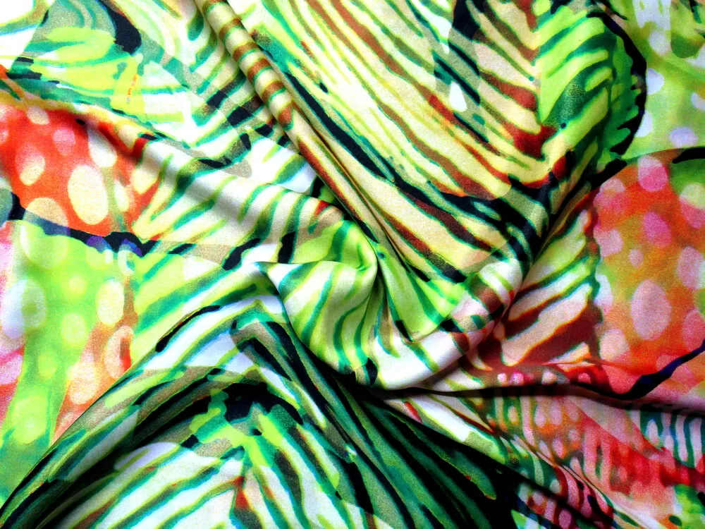 Satén Silky pomarančovo-zelený "vzorovaný"Skladom8,20 EUR/ m6,67 EUR bez DPH