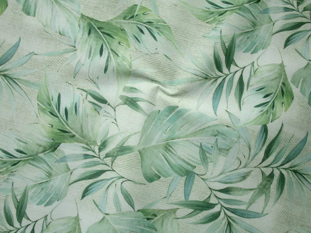 Satén bavlnený matný béžovo-zelená "listy"