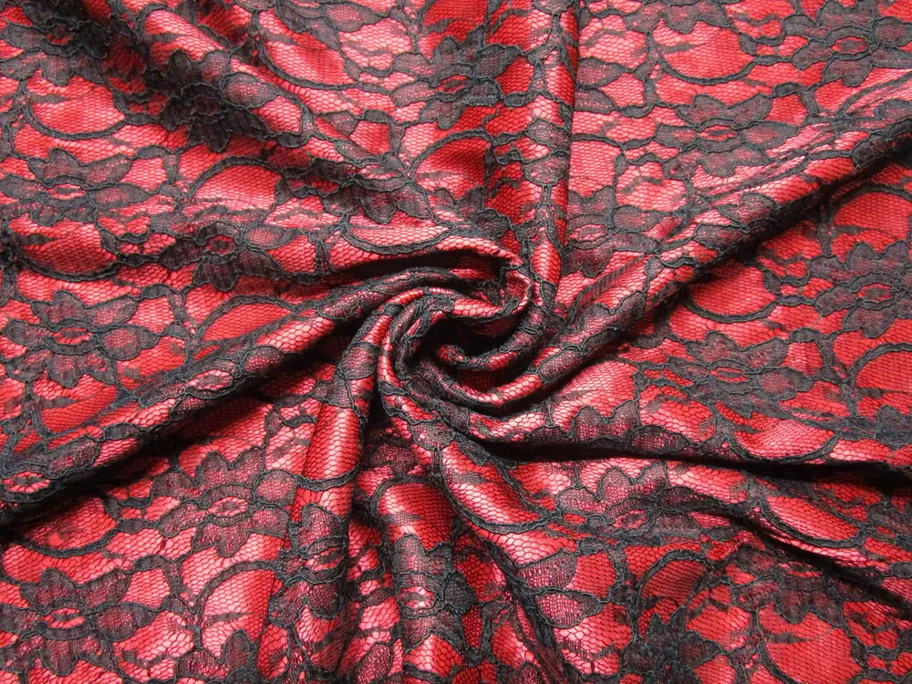 Satén červený "čierna krajka"Skladom11,30 EUR/ m9,19 EUR bez DPH