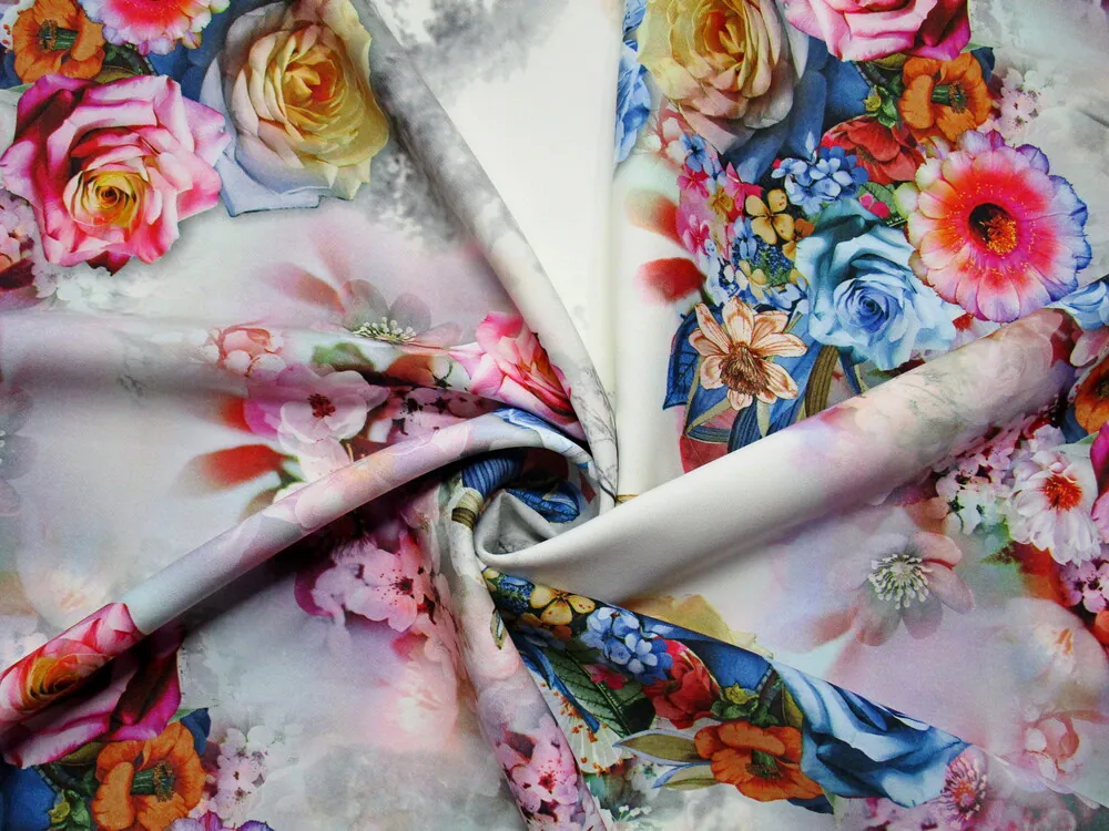 Šatovka Miláno maslovo-sivo-fialová "3D kvety"Skladom10,00 EUR/ m8,13 EUR bez DPH