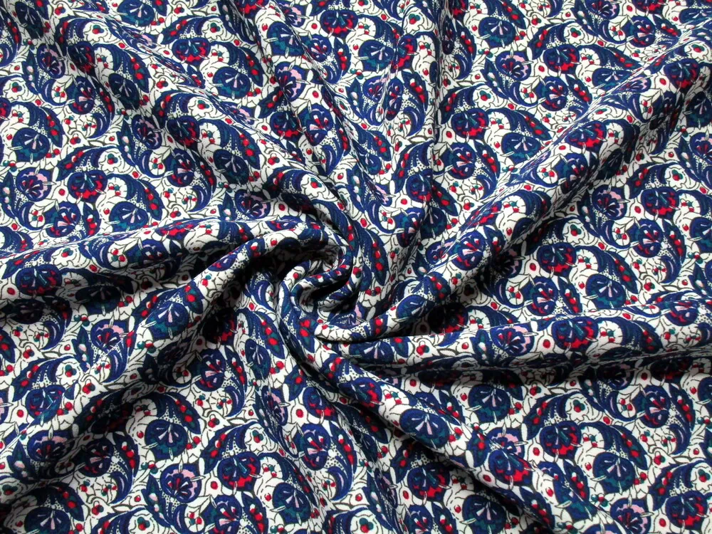 - vzor - ružovo - modré, červeno - modré a zeleno - modré kvety v tvare srdiečka, olivové čiarky na pozadí