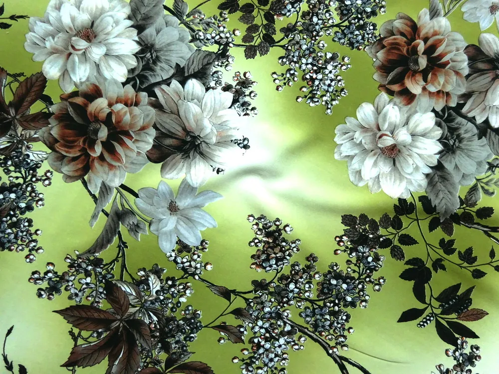 Šatovka maslovo-zelená "kvety" - 2. akosť - zbytokSkladom6,20 EUR/ ks5,04 EUR bez DPH
