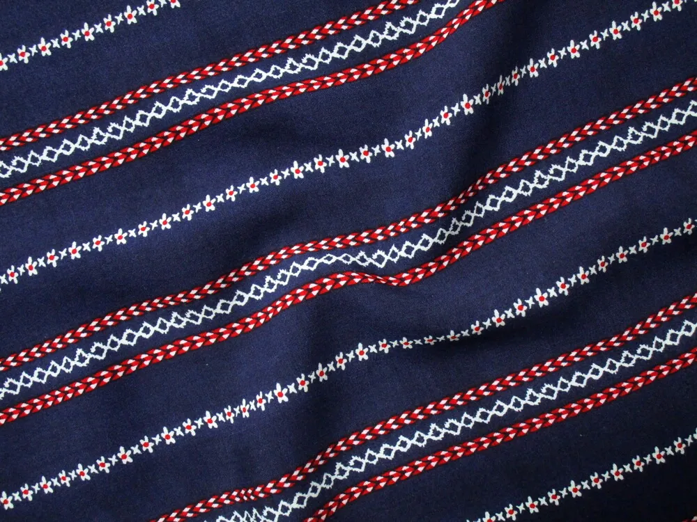 Šatovka tmavomodrá "kvety, pásiky"Skladom8,60 EUR/ m6,99 EUR bez DPH