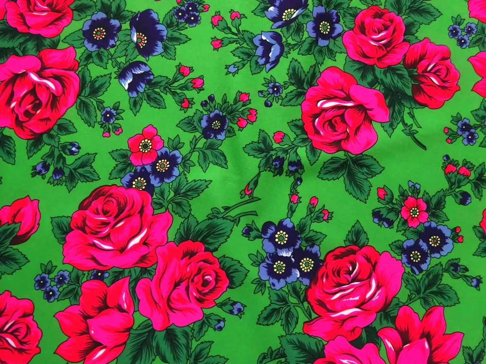 Šatovka zelená "červeno-cyklaménové kvety"Skladom12,50 EUR/ m10,16 EUR bez DPH