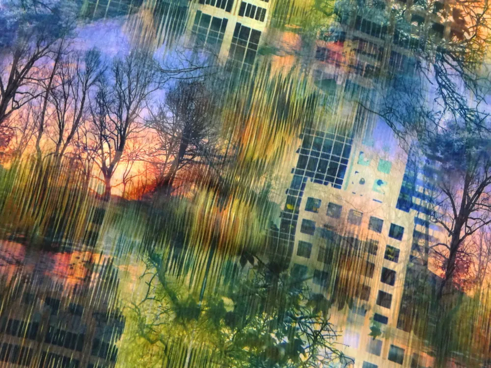 Šifón farebný "budovy, stromy"Skladom10,00 EUR/ m8,13 EUR bez DPH