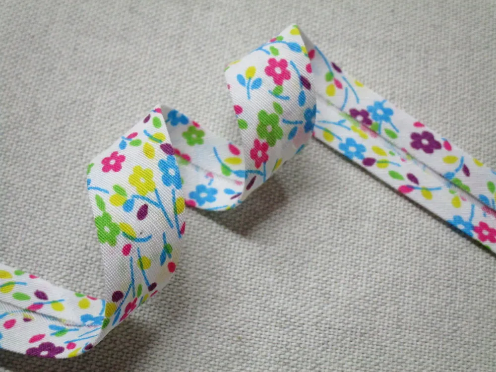 Šikmý prúžok bavlnený biely "kvety" - 20 mmSkladom0,60 EUR/ m0,49 EUR bez DPH