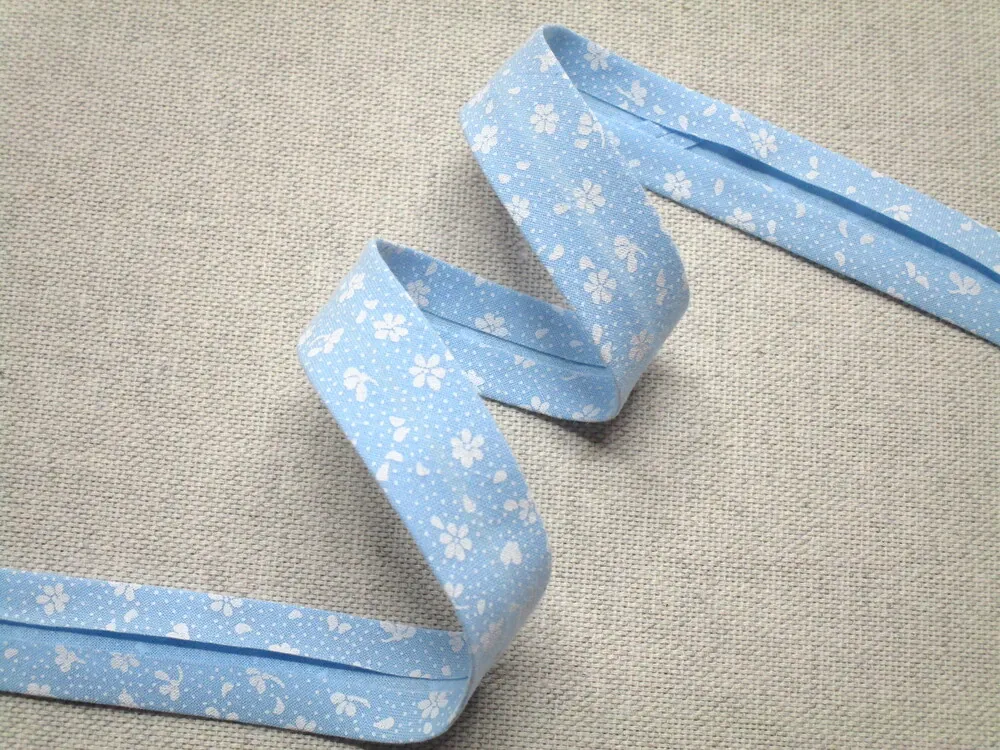 Šikmý prúžok bavlnený modrý "biely kvet" - 18 mmSkladom0,60 EUR/ m0,49 EUR bez DPH
