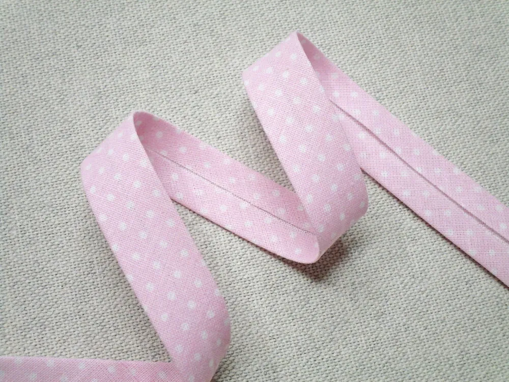 - Šikmý prúžok bavlnený ružový "biela bodka" - 18 mm