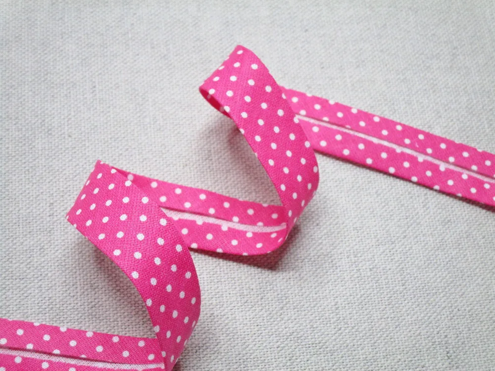 Šikmý prúžok bavlnený ružový "biela bodka" - 18 mmSkladom0,60 EUR/ m0,49 EUR bez DPH