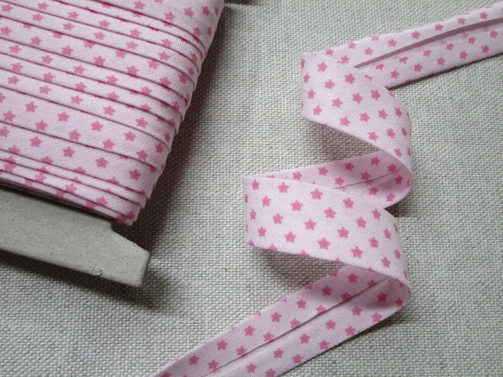 Šikmý prúžok bavlnený ružový "hviezdička" - 18 mmSkladom0,60 EUR/ m0,49 EUR bez DPH
