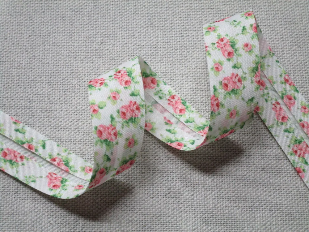 Šikmý prúžok bavlnený smotanový "kvety" - 20 mmSkladom0,70 EUR/ m0,57 EUR bez DPH