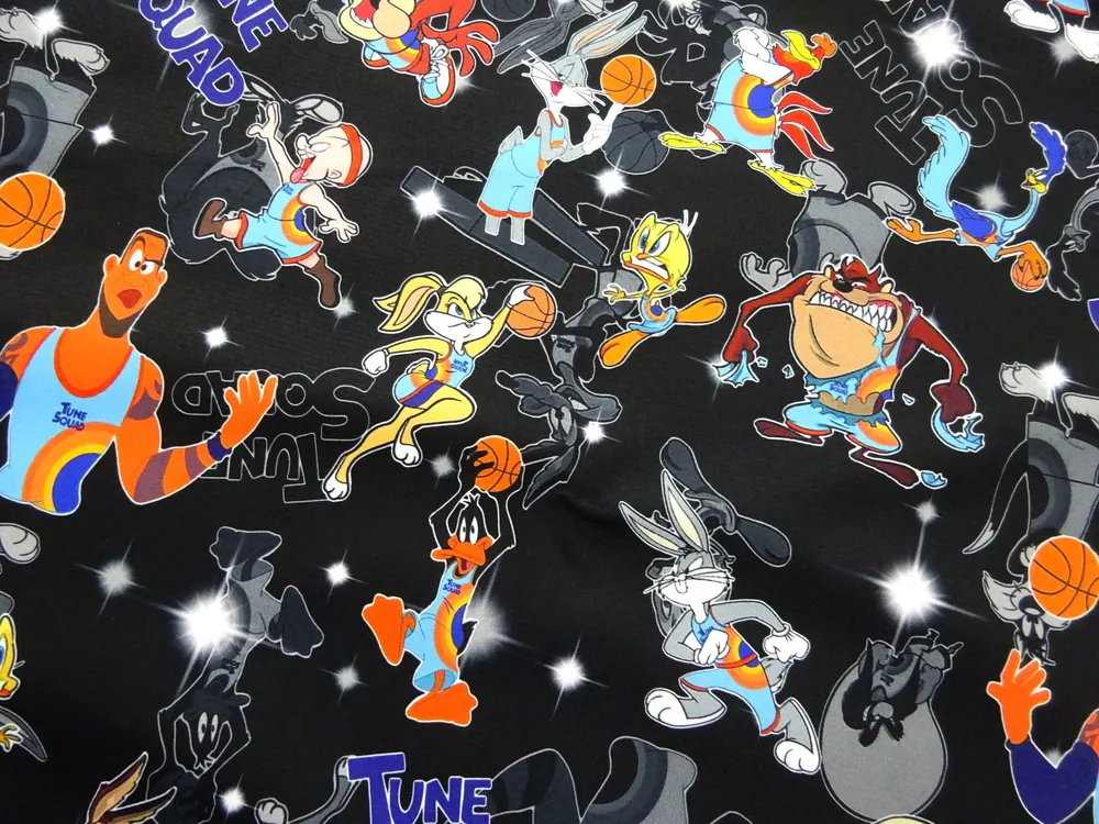 - vzor - rozprávkové postavičky, nápis "TUNE SQUAD"